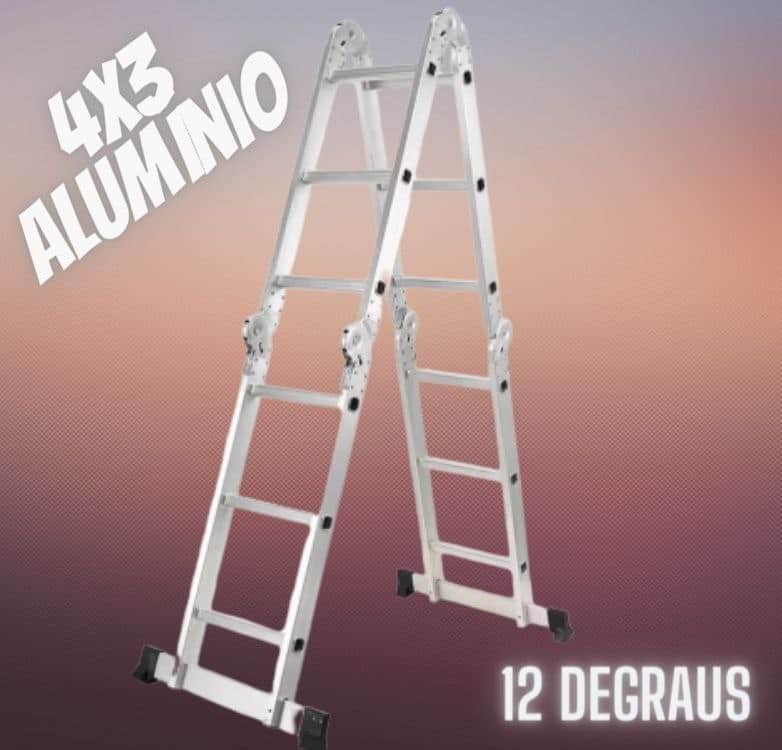 Escada de alumínio multifuncional 4 x 3 com 12 degraus 13 em 1 Botafogo Lar & Lazer ESC0292 cinza