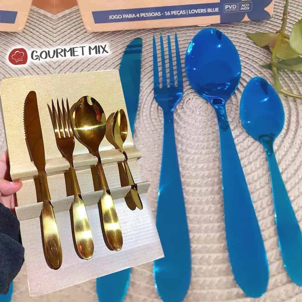 Faqueiro Dourado Lovers Aço Inox 16 Peças Gourmet Mix
