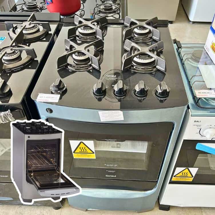 Fogão Consul 4 Bocas Inox Mesa de Vidro CFO4VAR