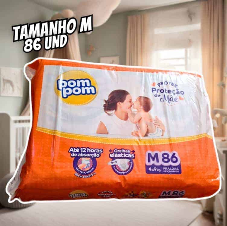 Fralda Pom Pom Protek Proteção de Mãe Hiper M 86 Unidades