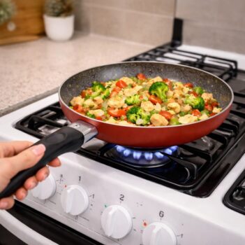 Frigideira Rochedo Facilita Vermelho 24cm com Antiaderente Resist – Limpa Fácil e Dura Mais, reforçado com partículas minerais, Thermo-Sinal e Cabos Reforçados
