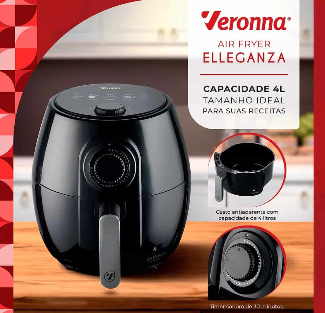 Fritadeira Air Fryer Elétrica 4 Litros 1350w C/ Pegador Inox