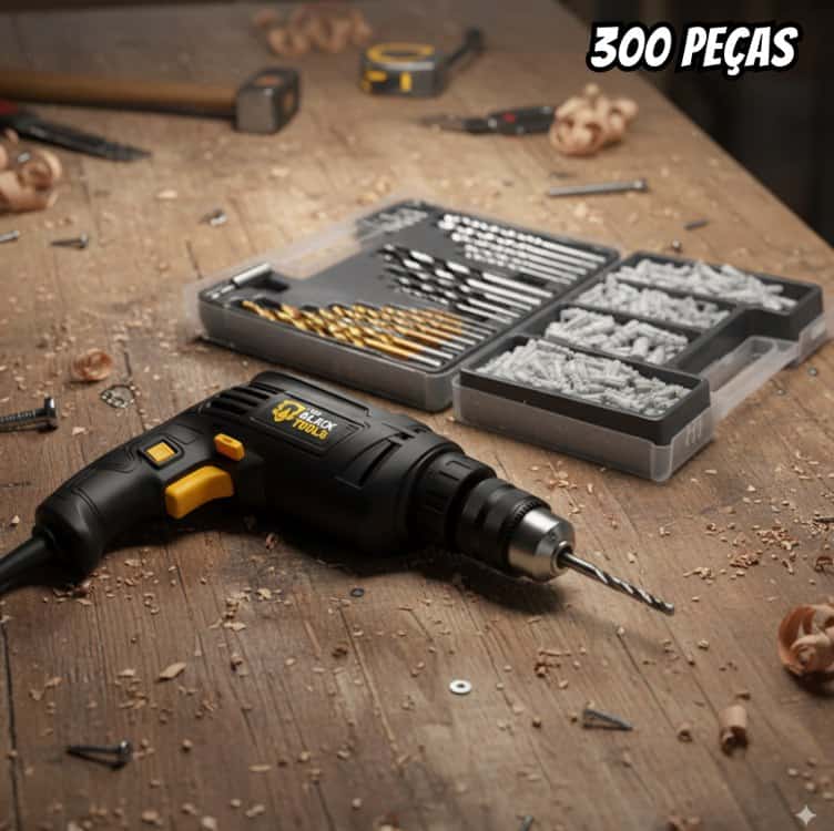 Furadeira De Impacto 550w 3/8 10mm The Black Tools Com Kit 300 Peças Brocas E Buchas