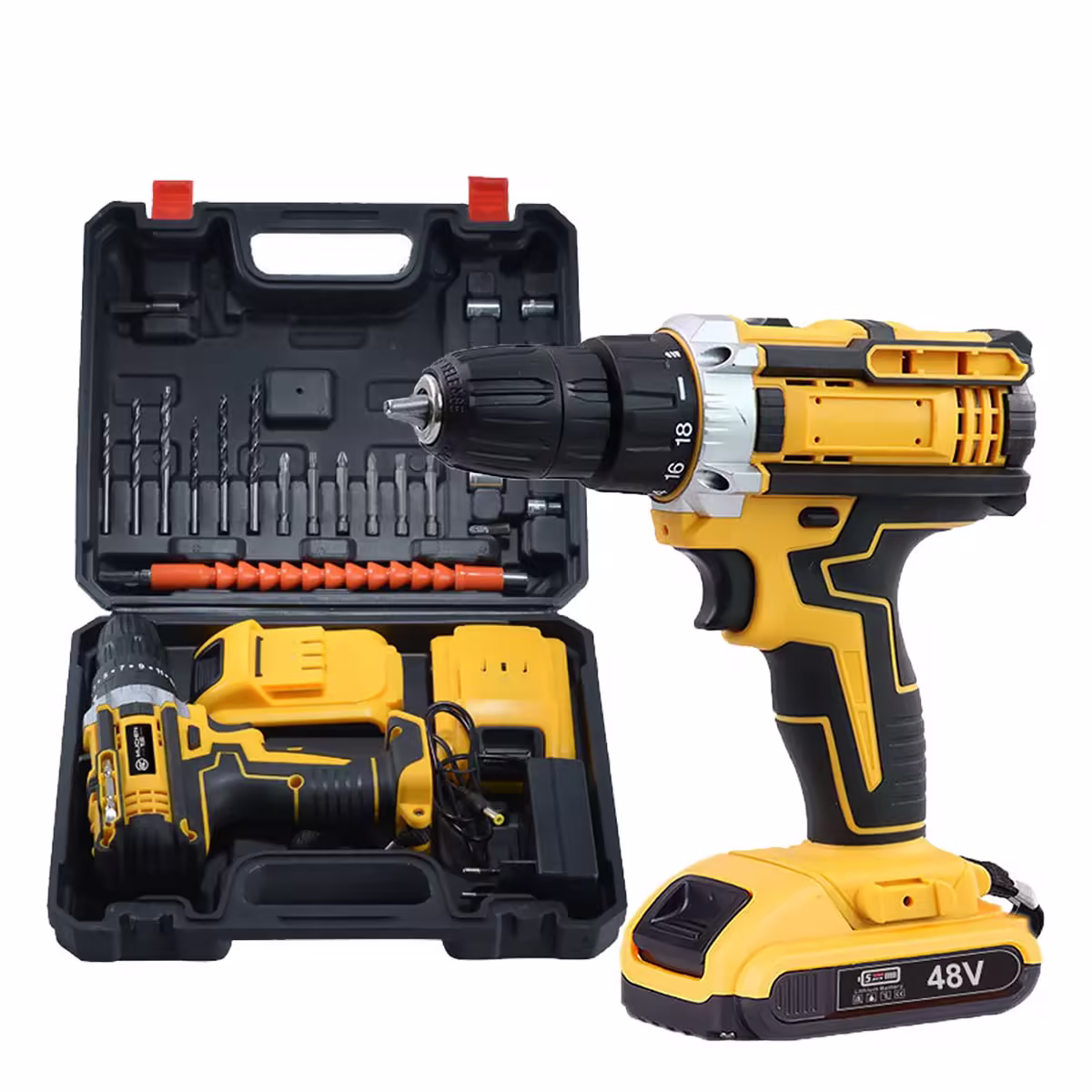 Furadeira Parafusadeira 48v Com 2 Baterias Recarregáveis Maleta Mandril 10mm Torque 32n.m 0-400/0-1400 Rpm