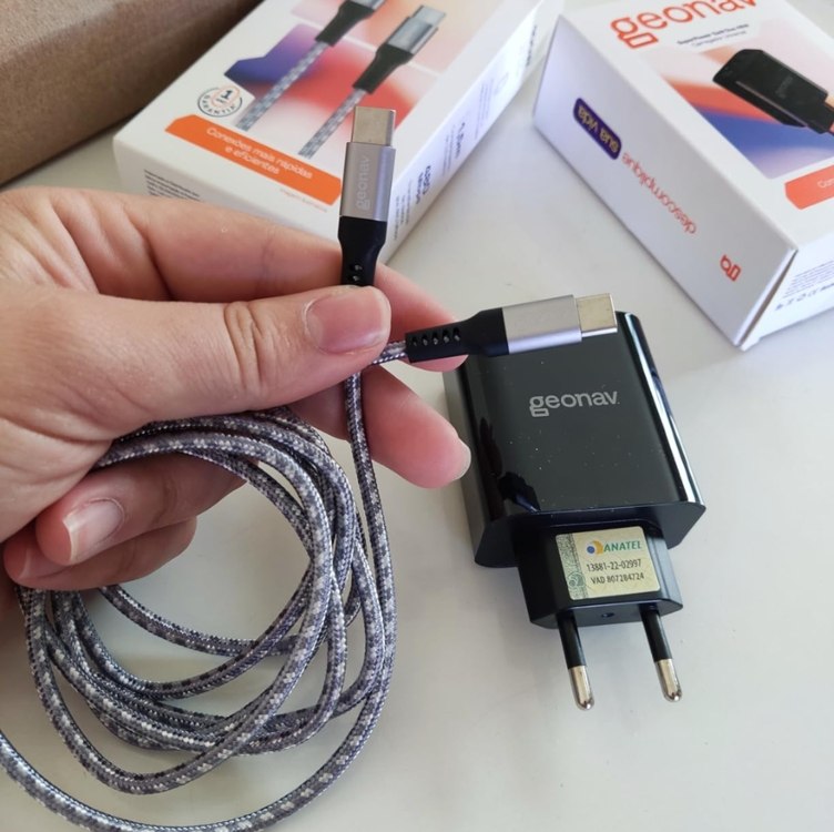Geonav Cabo USB-C (tipo C) para USB-C (tipo C), 1,5 metros, nylon trançado, UCC04, Cinza/Branco