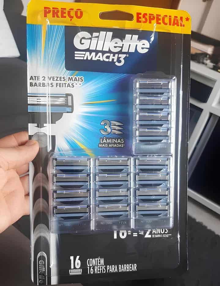 – Gillette Mach3 Carga para Aparelho de Barbear Recarregável com 3 Lâminas Afiadas por Mais Tempo, 16 Uds