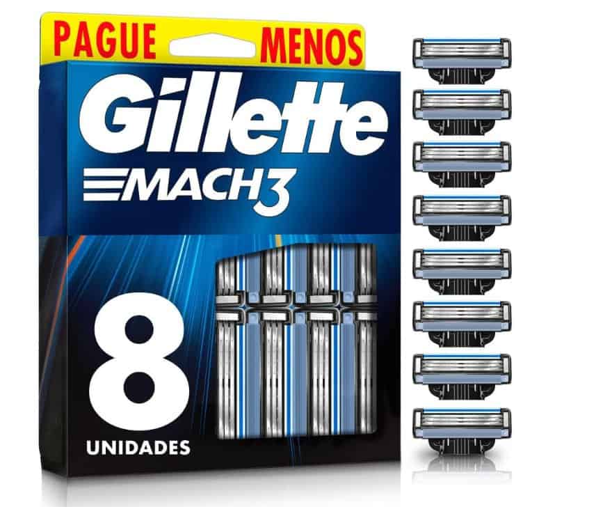 Gillette Mach3 Carga para Aparelho de Barbear Recarregável com 3 Lâminas Afiadas por Mais Tempo, 8 Uds