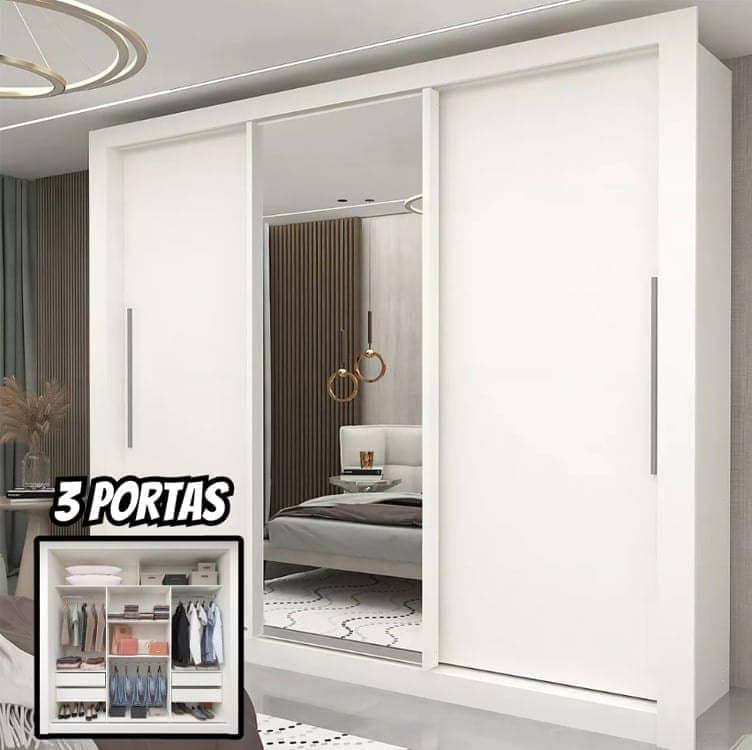 ✅ Guarda-roupa Casal 3 Portas 1 Porta Espelhada Milão He