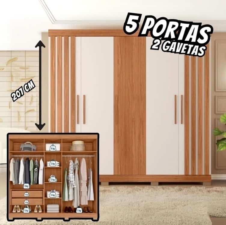 Guarda-roupa Casal com Sapateiro 5 Portas 2 Gavetas Caemmun Sophia