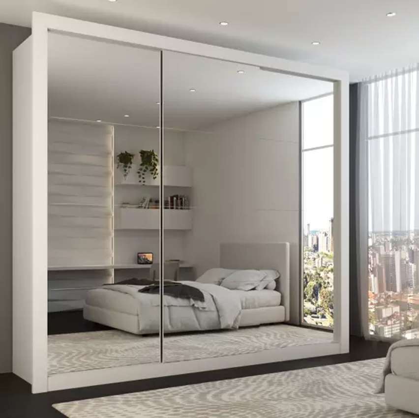 Guarda-Roupa Casal Luiza 3 Portas de Correr 4 Gavetas Espelhado Branco – Panorama Móveis