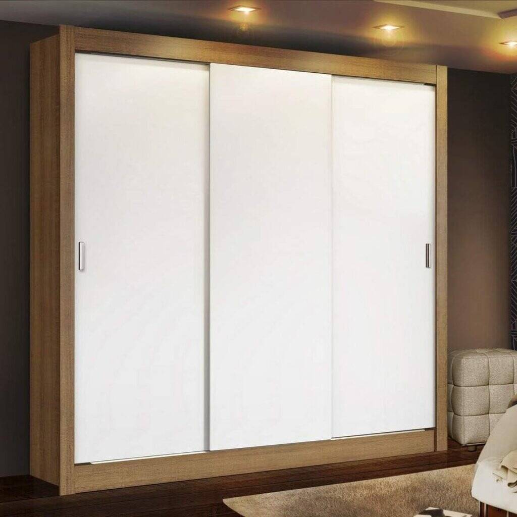 ✅ Guarda Roupa Casal Madesa Mônaco 3 Portas de Correr – Rustic/Branco