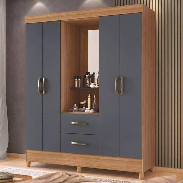 Guarda Roupas Casal Capela Com Espelho 4 Portas 2 Gavetas Mobi Nature / Grafite Albatroz
