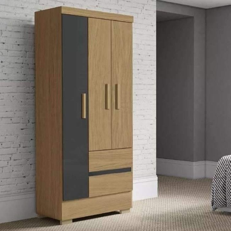 Guarda Roupas Solteiro 3 Portas 2 Gavetas Coimbra Cor Atacama Grafite Aramóveis