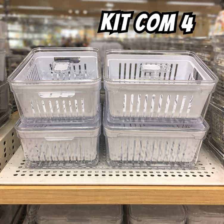 House Organizer Kit 4 Organizadores Geladeira Armário Cozinha 2,2 Litros Alimentos Vegetais