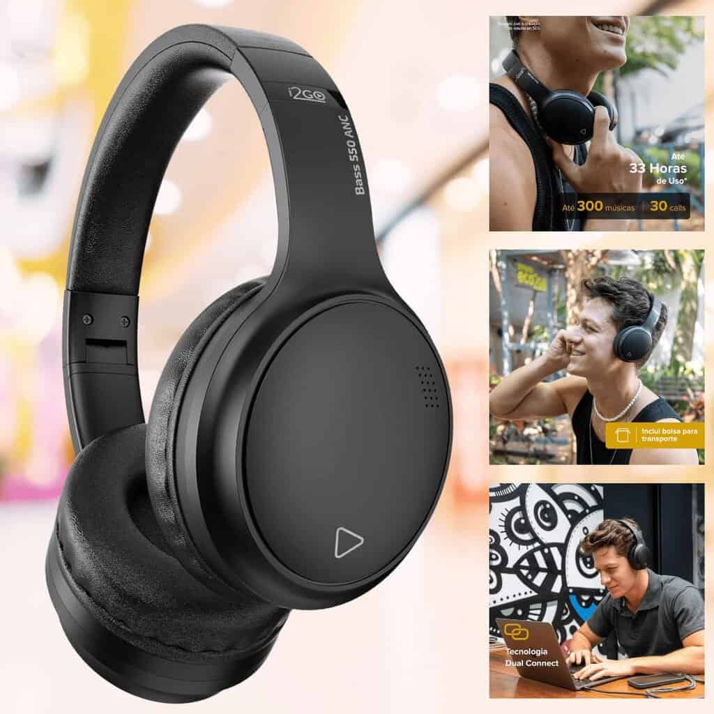 i2GO, Headphone Bass 550 ANC Cancelamento de Ruído e 33h de bateria