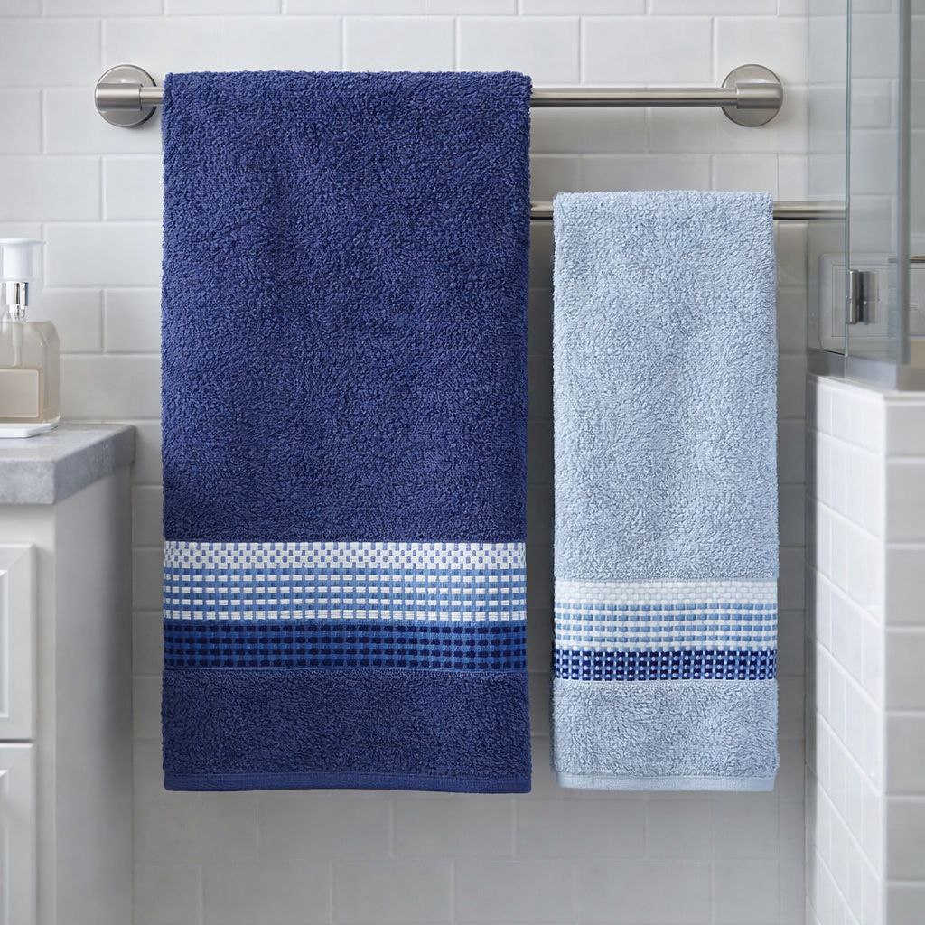 Jogo De Banho E Rosto 4 Pçs Algodão Venus Select Camesa Lisa Marinho Com Azul Claro