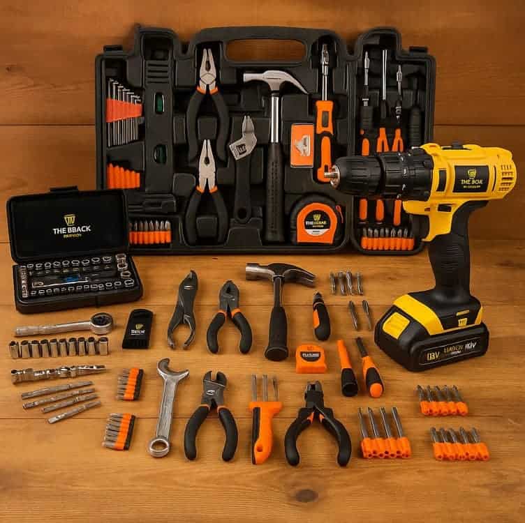 Jogo De Ferramentas 169 Peças Com Maleta E Furadeira Parafusadeira Sem Fio A Bateria Tb-12e 12v 3/8 10mm The Black Tools