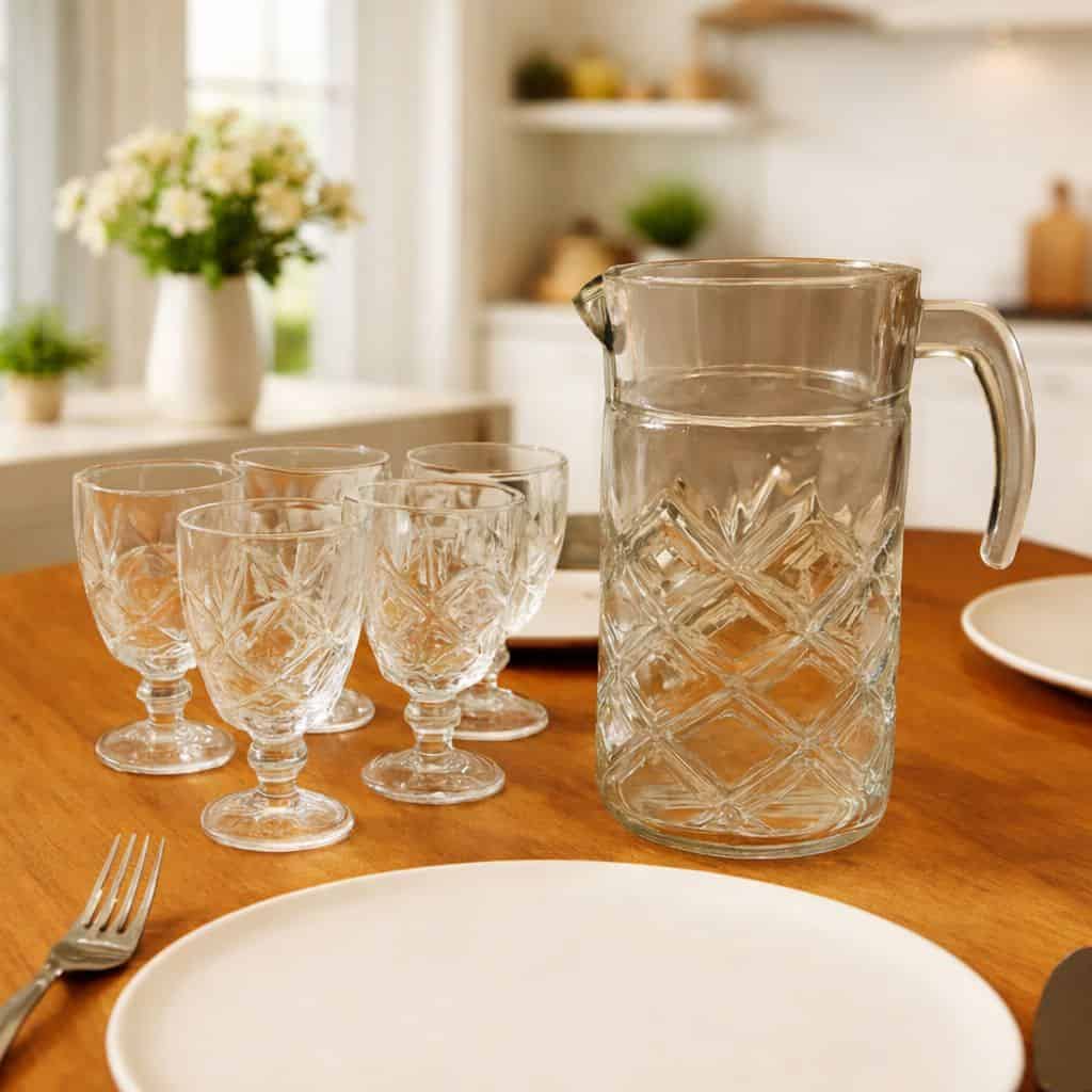 Jogo De Jarra 1.2l Com 6 Taças 200ml Pinea, Casambiente