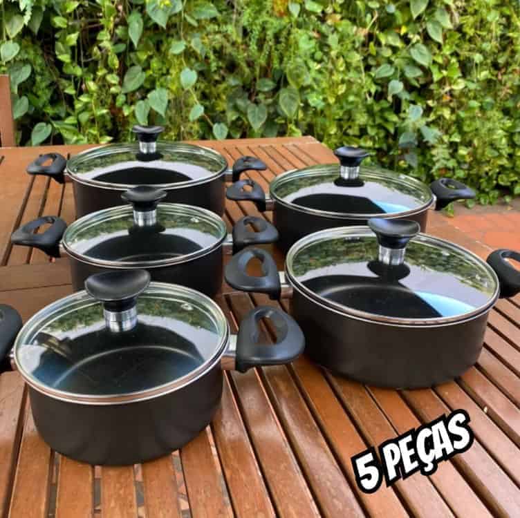 Jogo De Panelas 5 Pçs Antiaderente Tampa De Vidro