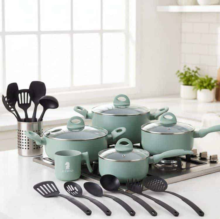 Jogo De Panelas Antiaderente Indução Revestimento Mármore Verde