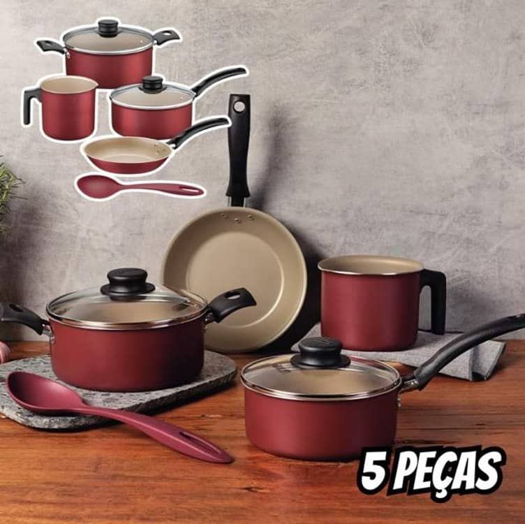 Jogo De Panelas Antiaderente Tramontina Turim 5 Peças