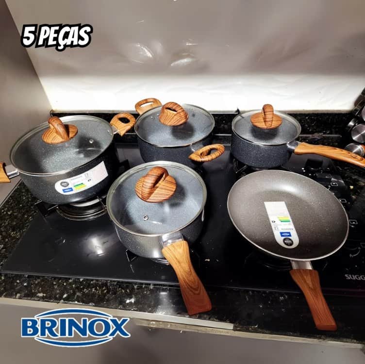 Jogo de Panelas Brinox Antiaderente Ceramic Life 5 Peças Smart Plus C/ Indução Granito