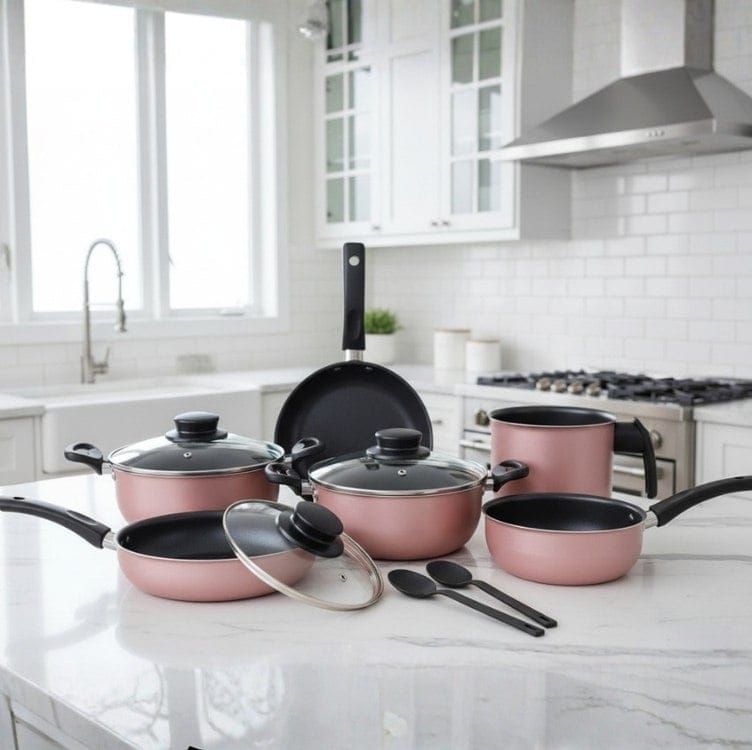Jogo de Panelas Elegan com Tampa Vidro 8 Peças- Rosa