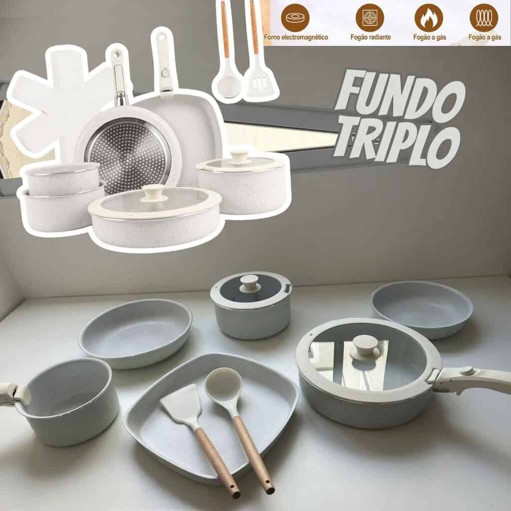 Jogo De Panelas Indução/gás Fundo Triplo Cerâmico 18 Pçs