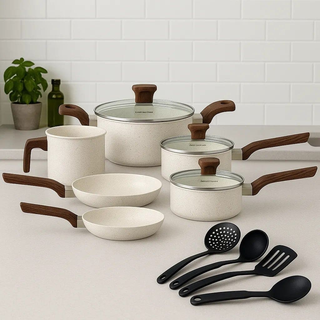 Jogo De Panelas Indução Mimo Style Cerâmica 10 Peças Cor Mármore