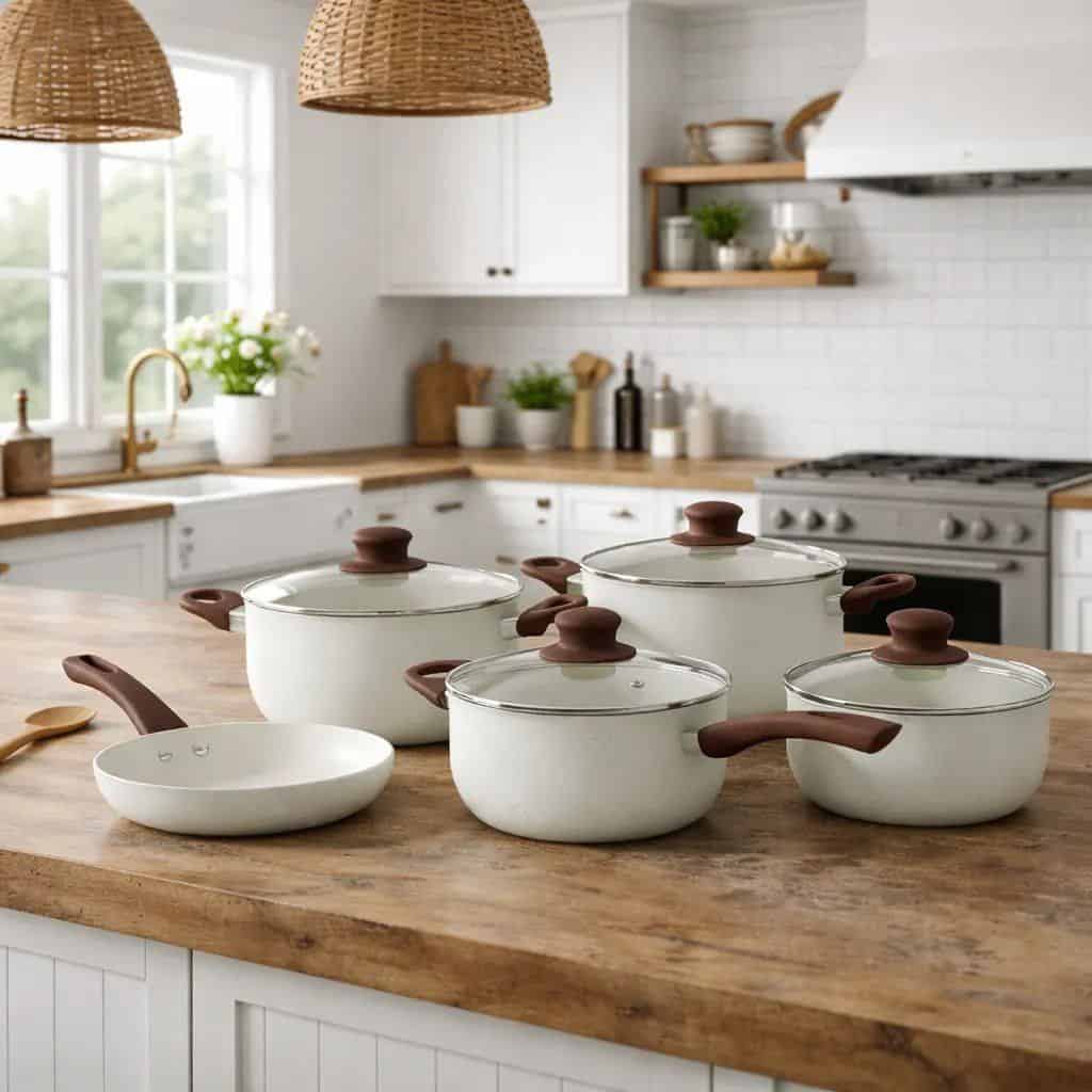 Jogo De Panelas Revestimento Cerâmico Para Fogão Tradicional E Indução Florença Vanila 5 Peças