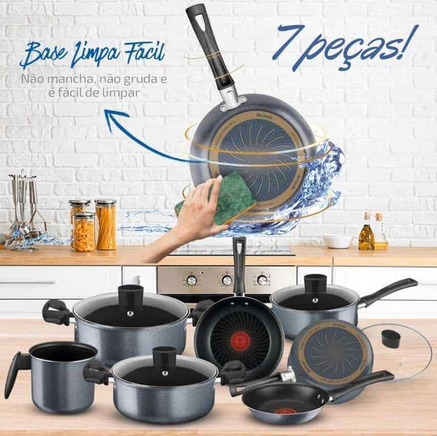 Jogo de Panelas, Rochedo, Limpa Fácil, 7 peças, Grafite