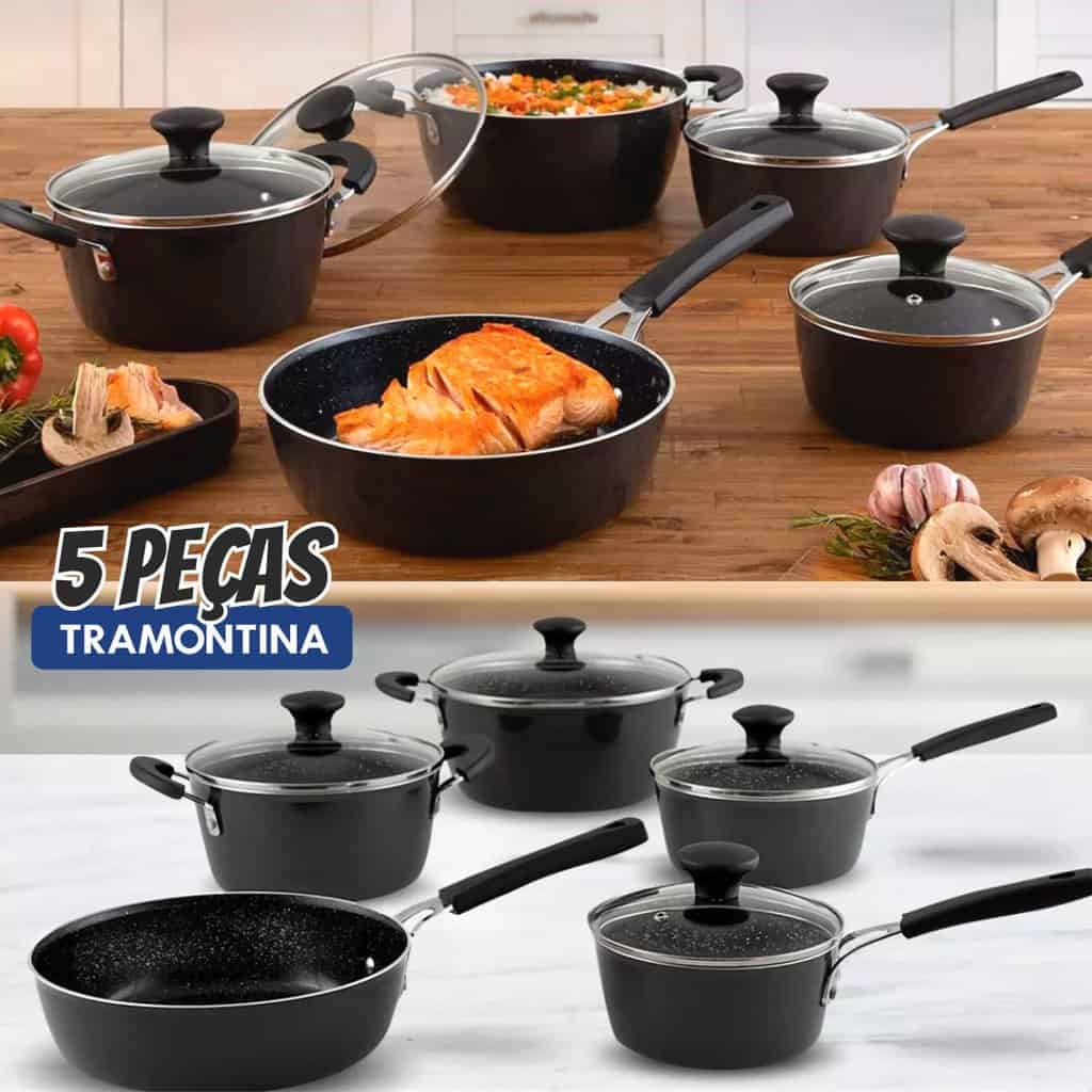 Jogo de Panelas Tramontina Revestimento Cerâmico de Alumínio Cinza 5 Peças Glenz