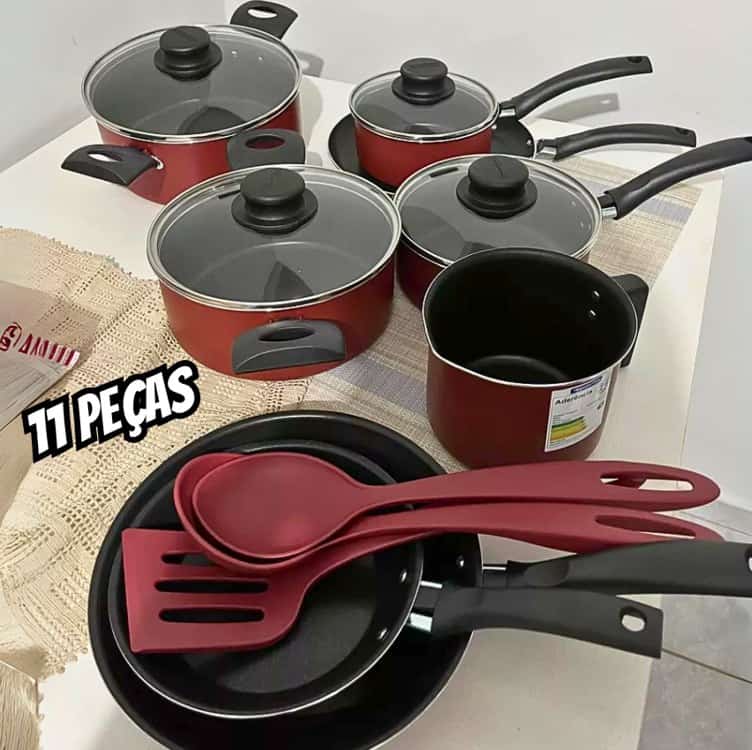 Jogo De Panelas Tramontina Turim 11 Peças Starflon Vermelha
