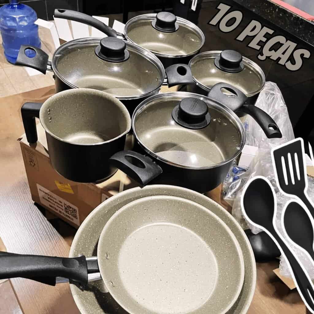 Jogo de Panelas Tramontina Turim em Alumínio com Revestimento Interno e Externo em Antiaderente Starflon Max Preto 10 Peças