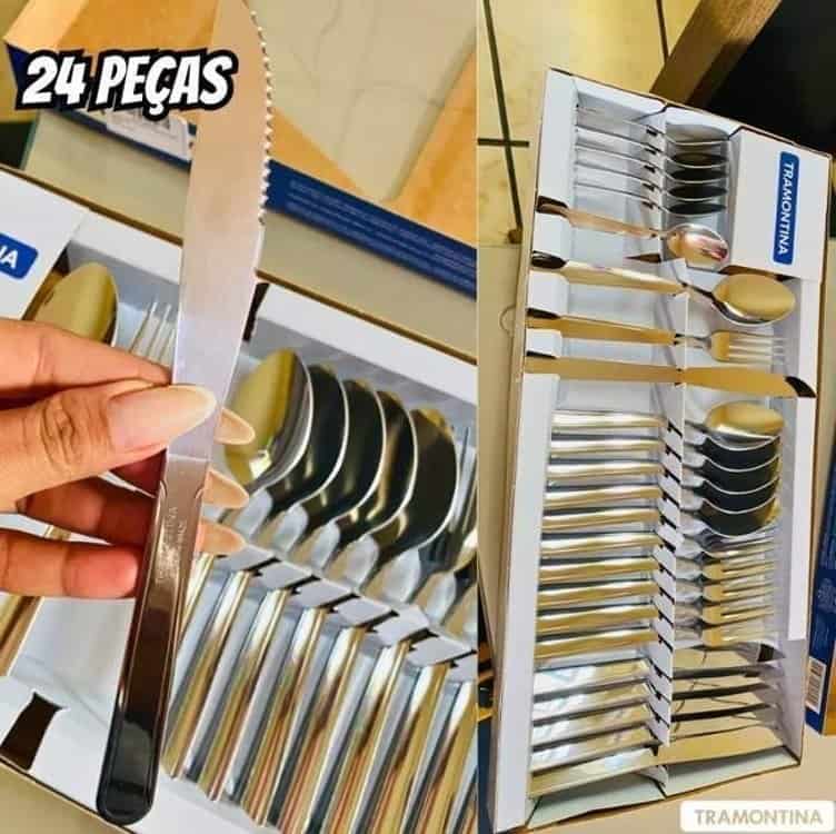 Jogo De Talheres Colher Faca Garfo 24 Peças Inox Tramontina