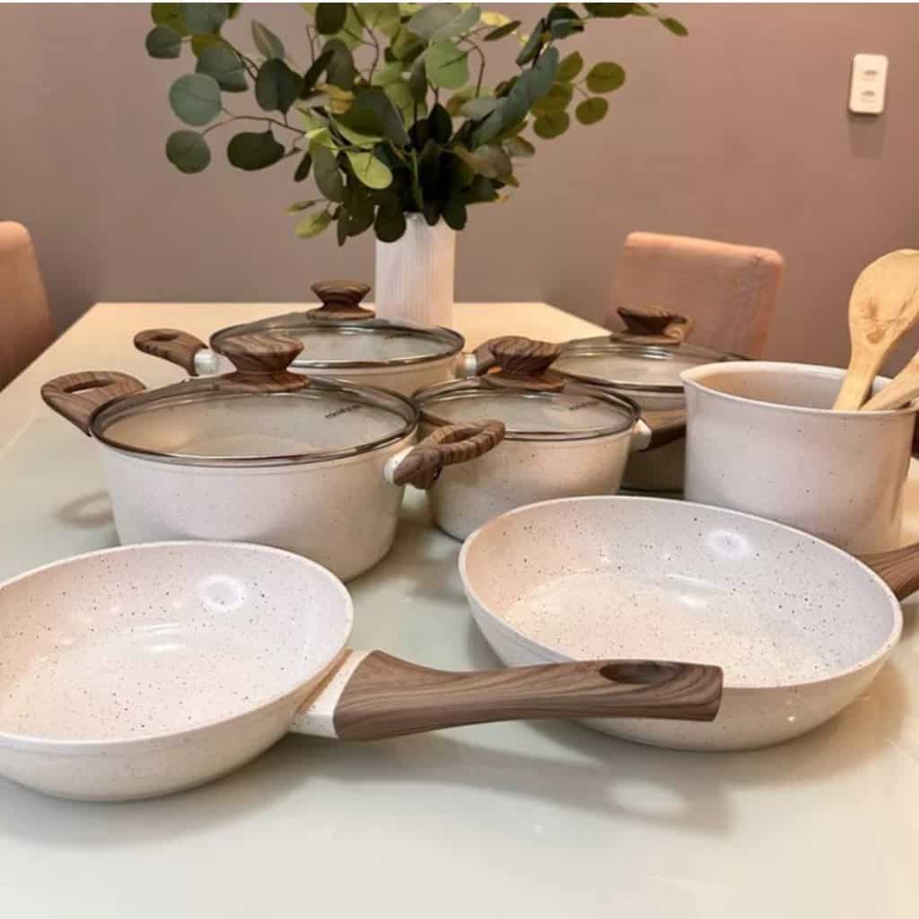 Jogo Panela Indução Marmol Vanilla Cerâmico 10 Pç Style Cook