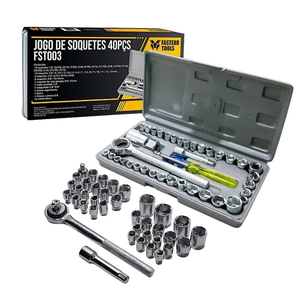 Jogo Soquetes Sextavado Fasterr C/ Catraca 40 Pçs C/ Estojo