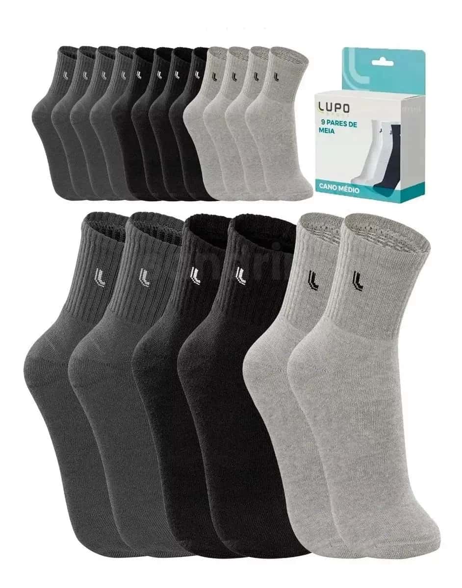 ☑️ Kit 10 Pares Meias Lupo Cano Médio