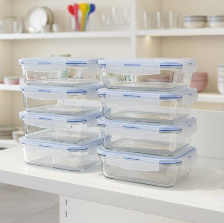 Kit 10 Potes 370ml Vidro Hermético Marmita Fitness Com Tampa Quatro Travas Retangular Anti Vazamento