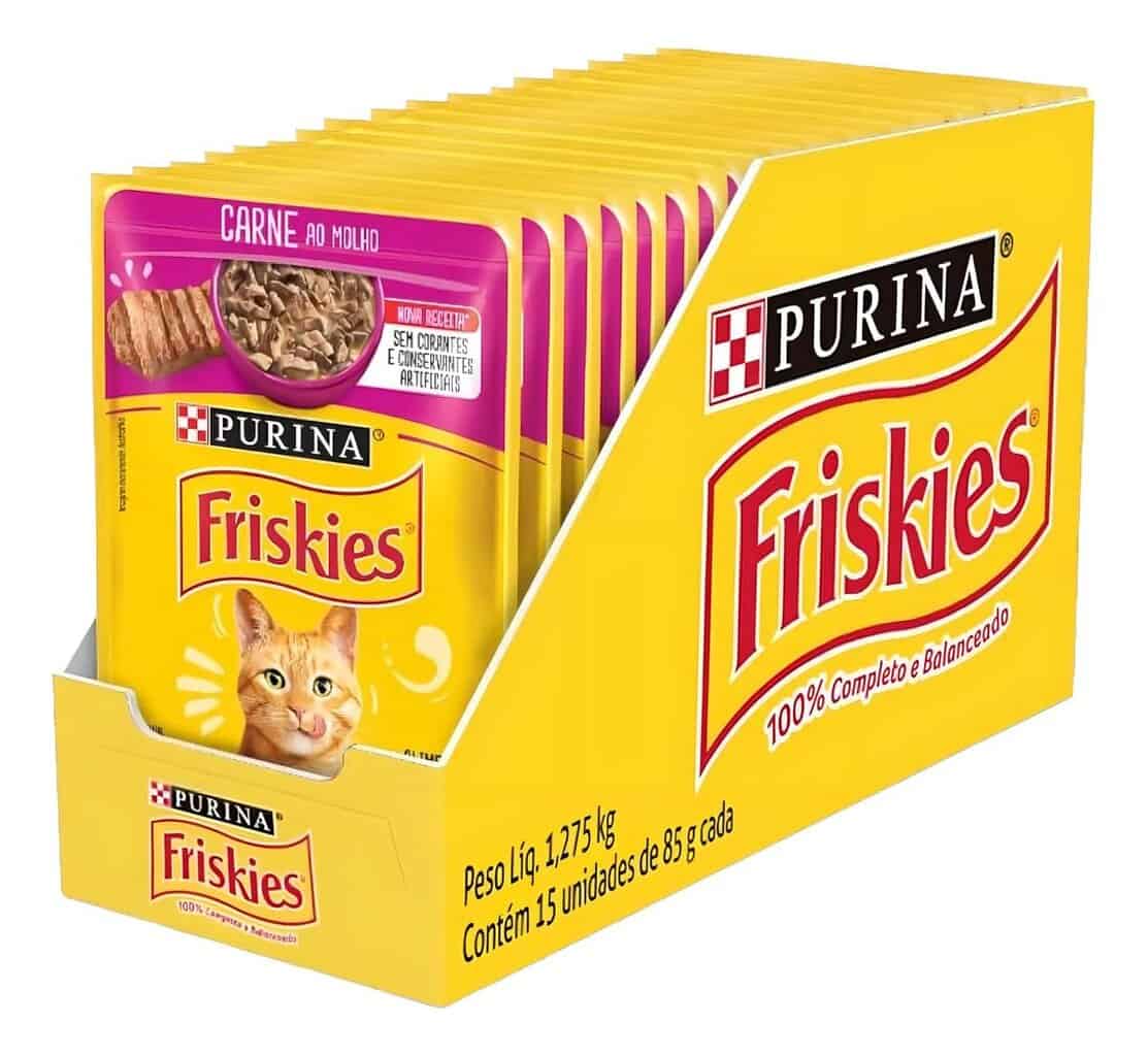 Kit 15 Un Sache Friskies Gato Carne Molho 85g Petisco Felino