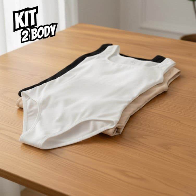 Kit 2 Body Feminino Regata Alça Larga Blusa Decote Quadrado