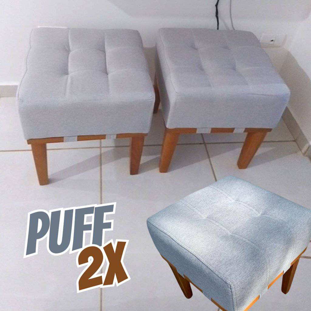 Kit 2 Puff Quadrado Para Sala Quarto Apolo Em Linho Cinza Sanna Decor