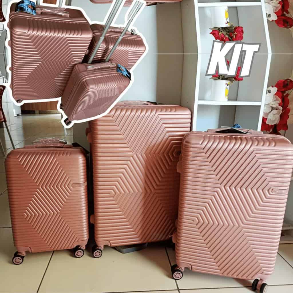 Kit 3 Malas Executivas Swissport ABS Giratória 360° Resistente (Rose)