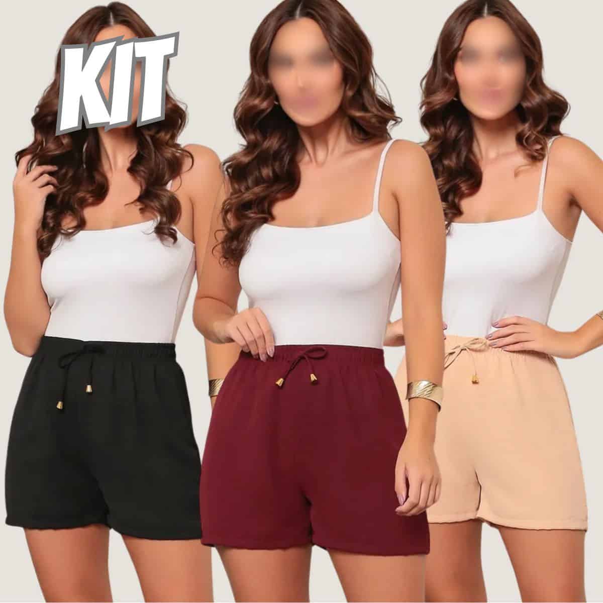 Kit 3 Short Duna Feminino Básico Leve Soltinho Confortável