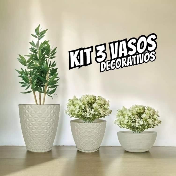 Kit 3 Vaso De Planta Decoração Coluna Bojo Bacia Prato Mesa