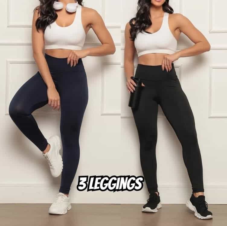 KIT 3x Calças Leggings, Feminina, Suplex, Academia Fitness Treino Compressão Esportiva, Yoga, Casual – Dandi Modas Ltda