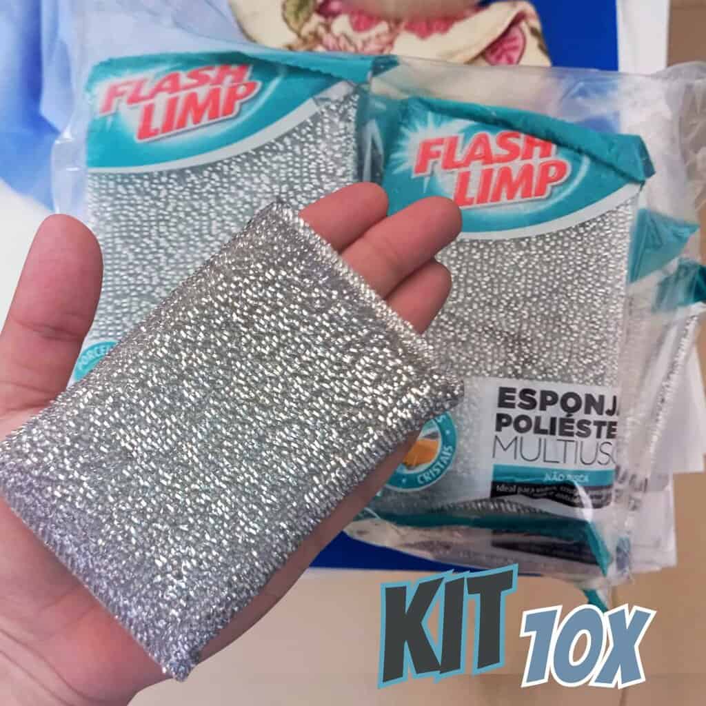 Flash Limp Kit Com 10 Esponjas Multiuso Poliéster Limpa Sem Riscar Ep1416360-10