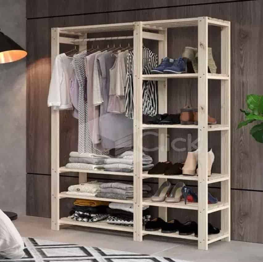 Kit Estante Madeira Natural De Chão Simples 132x50cm Cor Crú