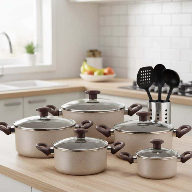 Kit Jogo De Panelas Caçarolas 9 Peças Teflon 6 Camadas Crema