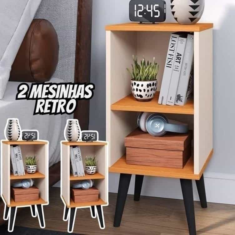 Kit Mesa Cabeceira Retrô Bide Cama Quarto Kit 2 Unidades – Branco